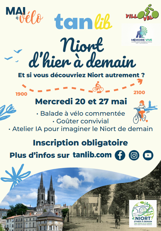 Transdev orchestre l’opération « Niort d’hier à demain » dans le cadre de Mai à vélo 202620 avril 2026Ecrit par Denis Braux Avec la participation active de villOvélO. affiche niort d’hier à demainTélécharger
